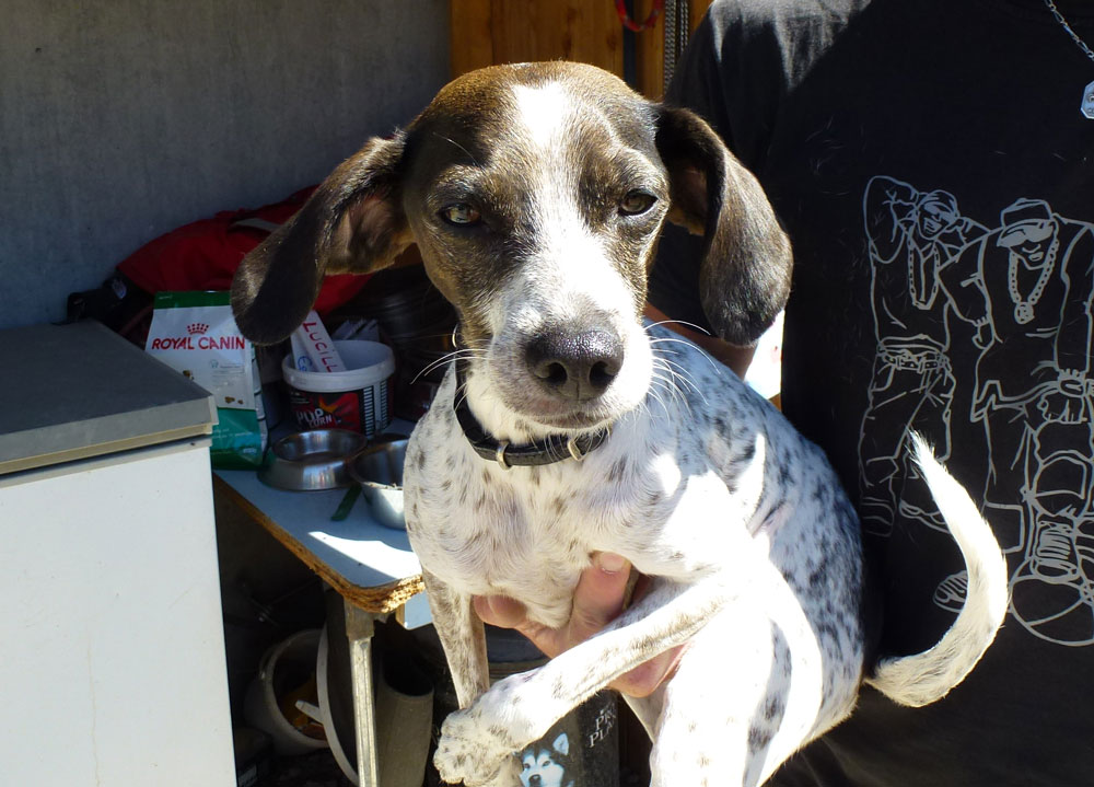 Hindy est une petite puce adoptée chez nous il y a deux ans..et puis les aléa de la vie font que les personnes déménagent et voilà..Hindy est partie vivre à Lyon en pleine ville avec son maître. Les sorties sont devenues plus rares, la ville n'est pas forcément terrible pour un petit chien qui n'a que peu de sorties. Regardez ses griffes comme elles sont longues et témoignent de l'insuffisance de promenades. Bref , la vie devenant un enfer pour son maître mais aussi pour Hindy, il a préféré la ramener... Et voici notre jolie poupette qui tient dans les bras de Vincent sans rien dire, mais a hâte de retrouver une famille qui la sortira cette fois! Elle fait à peine 10 kg