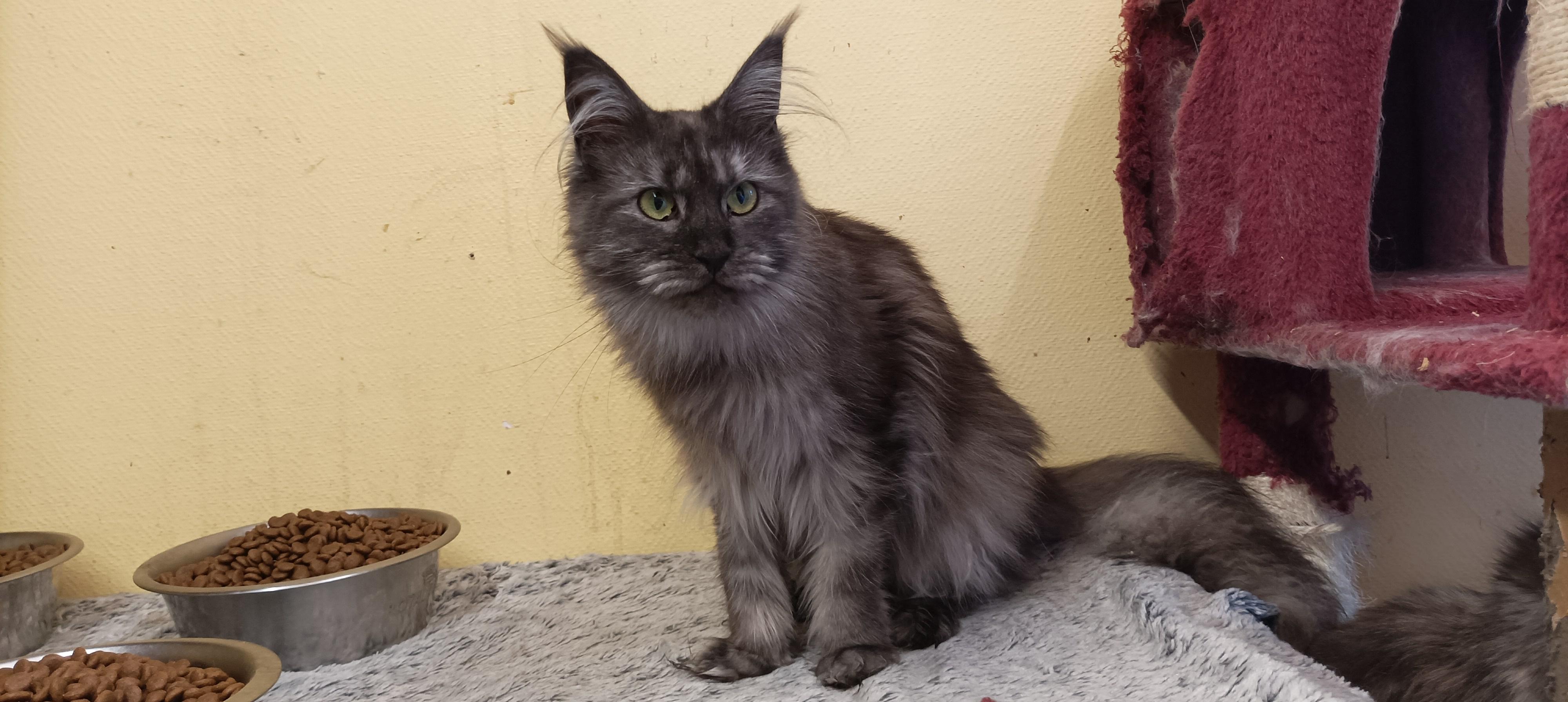Type d'animal: ChatRace dominante: MAIN COONSexe: FemelleNé(e) le: 18/01/2024Taille: MoyenInfos santé: Stérilisé / CastréVaccinéTestéIdentifiédéjà adoptée merci Facebook