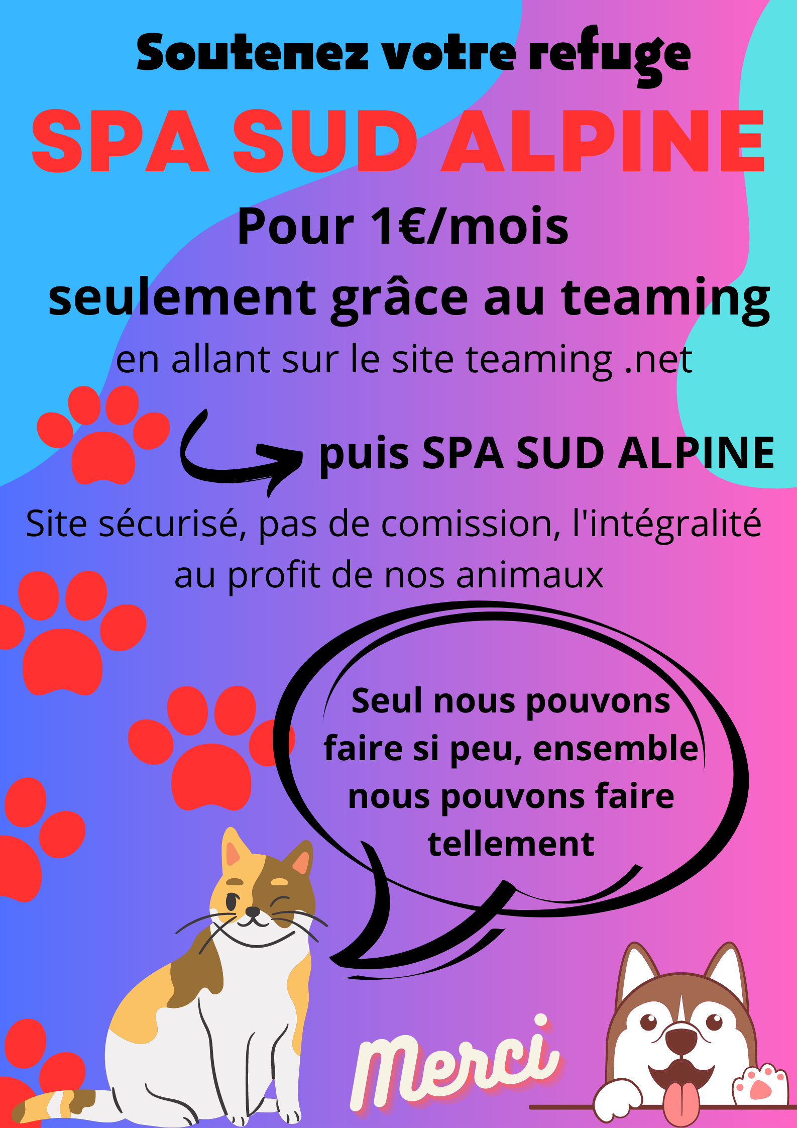 Inscrivez vous sur Teaming et soutenez nos actions pour 1€ par mois Merci pour votre soutien. Facebook
